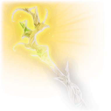 Белесый посох, украшенный врезанным в него топазом в форме капли. Слегка холодит руку.