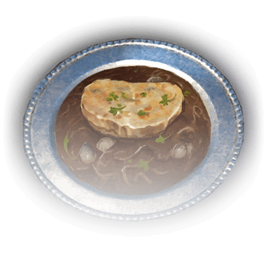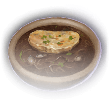 Луковый суп — это расходуемый предмет, который можно использовать в качестве припасов для инициации длительного отдыха.