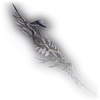 Древко жезла образовано переплетенными корнями, с которых свисают клочья волос и плоти. На жезле нацарапано имя "Коннор".
