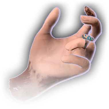 Отрубленная рука с перстнем на пальце. На обруче перстня видно изображение ухмыляющейся рожи.