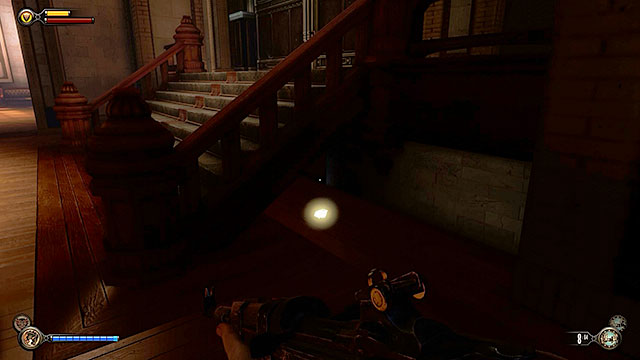 Войдите в здание, поверните налево и осмотрите область под лестницей, чтобы получить еще одну отмычку.