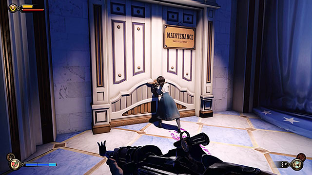 Продолжайте изучать первоначальные коридоры выставки, и вскоре вы столкнетесь с запертой дверью. Как и в случае с предыдущими дверями, связанными с историей, здесь вам не понадобятся отмычки, потому что Элизабет использует свою шпильку, чтобы открыть дверь.