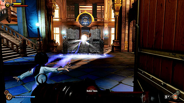 Войдите в большой зал, расположенный на другой стороне двери, и немедленно призовите щит, открыв разрывы, найденные в этом месте. Быстро разберитесь с ближайшими полицейскими, потому что Механизированный Патриот появится очень скоро. Коридор, расположенный справа от вас, содержит Crank Gun, что оружие будет здесь полезно.