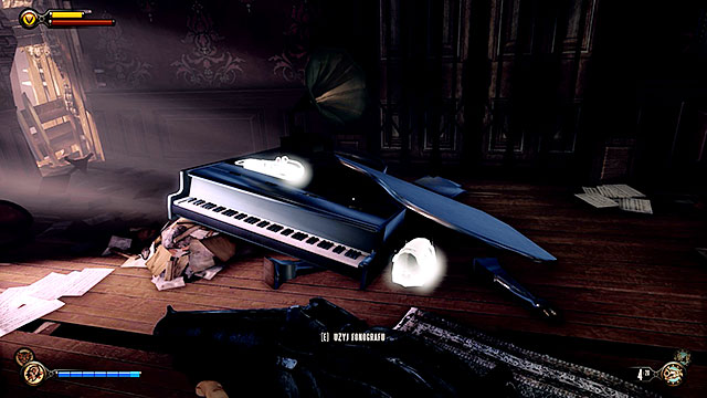 Двигайтесь в следующую комнату, но вместо того, чтобы идти прямо к машине Lutece, используйте лестницу, ведущую на первый этаж. Проверьте спальню на верхнем этаже, чтобы найти Голософон # 63, фаршированный между кроватью и ящиком.