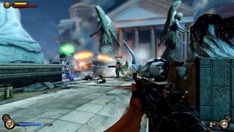 Вскоре после выхода из порта новые баржи, принадлежащие Comstock и Vox, начнут следовать за вами, и их будут сопровождать Москиты. Используйте служебные крюки, упомянутые ранее, чтобы перемещаться между баржами, что позволяет вам сократить расстояние на вражеских частях. Во время этой битвы рекомендуется использовать Силовой Поток энергетик, потому что одновременное уничтожение групп врагов позволит вам сэкономить время и боеприпасы. Также важно знать, что каждая из атакующих барж содержит соль, медикаменты и оружие. В конце концов вы попадете на дирижабль, перейдя к следующей главе.