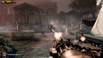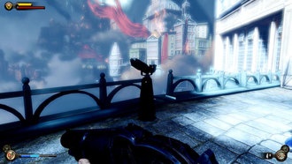 Теперь можете подойти к воротам дома Комстока (точка № 1 на карте) и взаимодействуйте со сканером отпечатков пальцев. Послушайте короткий разговор с Элизабет, прежде чем перейти к Сады памяти.