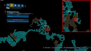 Еще один находится на севере карты. Карта выглядит так, как будто она находится на верхнем уровне, но на самом деле он ниже водопада. Следуйте по извилистым скалам, и вы найдете робота в воде.
