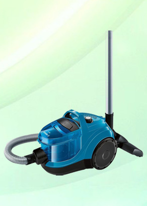 Пылесос для сухой уборки. Мощность всасывания 410 Вт. Хранение принадлежностей на защелке трубки; удобные ручки для переноски; радиус действия 9 метров; резиновые колеса. Насадки в комплекте: пол/ковёр TriActive; для мебели, щелевая, встроенная щетка. Особенности: индикатор заполнения пылесборника, регулятор мощности на корпусе.