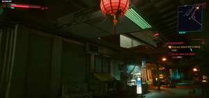 Есть несколько способов попасть в додзё. Если вы пойдете налево, вы найдете дверь в конце переулка, которую можно взломать, если у вас достаточно грубой силы. Либо поверните направо и найдите мусорный контейнер рядом с рыночным прилавком. Заберитесь на него, затем запрыгните на крышу рыночного прилавка и пройдите по платформам, чтобы забраться на крышу додзё.