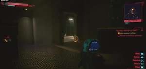 Идите к лестнице и либо взломайте дрона скриптом (замыкание), либо избегайте его.