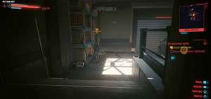 С крыши вы можете спуститься во двор, а затем пройти по линии забора до угла, где он встречается со зданием.