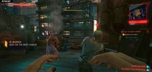 Следуйте по маркеру задания до места боя в Кабуки. Оно расположено на крыше здания, так что пригодится имплант двойного/усиленного прыжка, хотя это не обязательно.