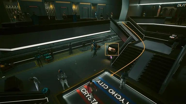 После прохождения пункта досмотра появится дополнительная цель. Вам нужно ввести код в терминале, чтобы получить чемодан от пособника Сойки. Терминал находится в зоне Luggage. Введите код, а затем найдите желтый чемодан и наденьте униформу Corp-Bud, которая позволит вам "проникнуть за брезент" (еще одна дополнительная цель).