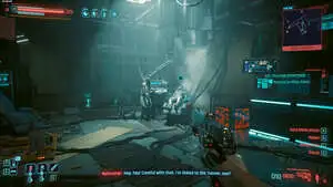 Примечание: в этом задании будет дополнительная (необязательная) цель. Если вы ее вы выполните и поговорите с нетраннером, то он перегрузит серверы. Это позволит вам уничтожать их. Когда на главного робота воздействует импульс ЭМИ, он перестанет атаковать на несколько секунд. Это ваша возможность нанести как можно больше урона.