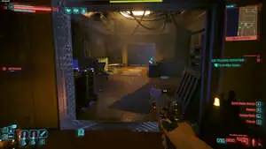 Затем пройдите через освещенные двойные двери в задней части комнаты и спуститесь по лестнице справа. Откройте дверь и пройдите через коридор вниз по еще одному лестничному пролету и через следующий дверной проем, где вы найдете нетраннера, подключенного к Милко Алексису.