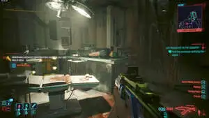 Спрыгните на нижний уровень и идите к задней части базы, где в стене есть отверстие, ведущее наружу. Прямо перед дырой в стене справа есть лестница, ведущая обратно на второй уровень. Поднимитесь по лестнице и пройдите в следующую комнату. В конце коридора вы найдете двойные двери. Продолжайте идти внутрь, и вы попадете в операционную с мертвым человеком на столе.