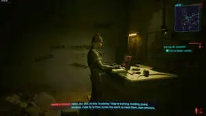 Пройдите через дверь, чтобы добраться до офиса Фионы. Внутри вы найдете маленького ребенка Чарли, просматривающего ящики слева. Поговорите с Чарли, чтобы узнать, почему он здесь, прежде чем пытаться украсть данные с компьютера.