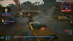 После угона машины враги поблизости начнут по вам стрелять. Избегайте их обстрела, пока Муамар не сообщит вам координаты. Вам нужно будет нейтрализовать или оторваться от преследующих вас врагов. Благодаря новому бою на транспортных средствах, представленному в обновлении 2.0 для Cyberpunk 2077, вы можете стрелять из пистолета через окно, чтобы быстро расправиться с врагами.