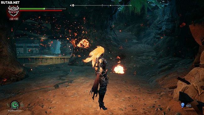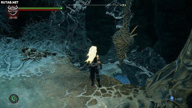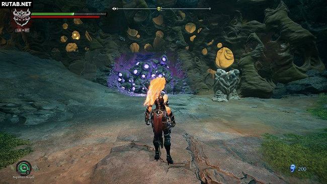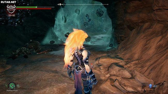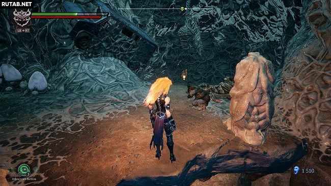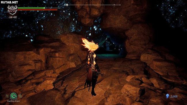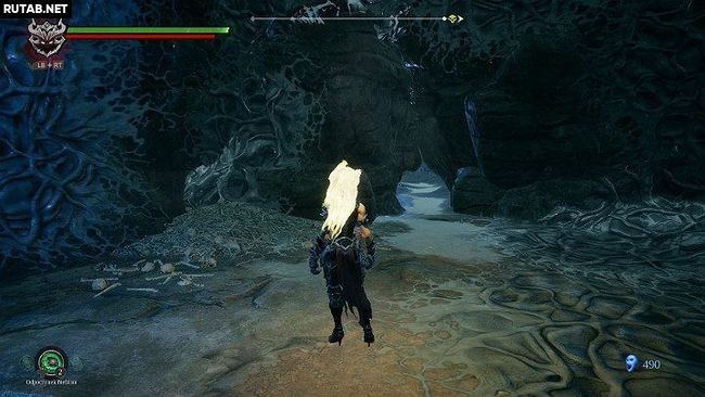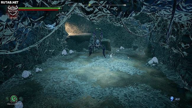Дойдя до центральной точки пещеры, посмотрите вверх. Под сводом находится подвесной кокон с душами. Сделайте огненный прыжок, чтобы получить его.