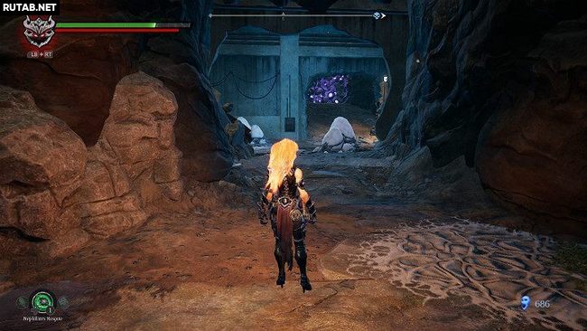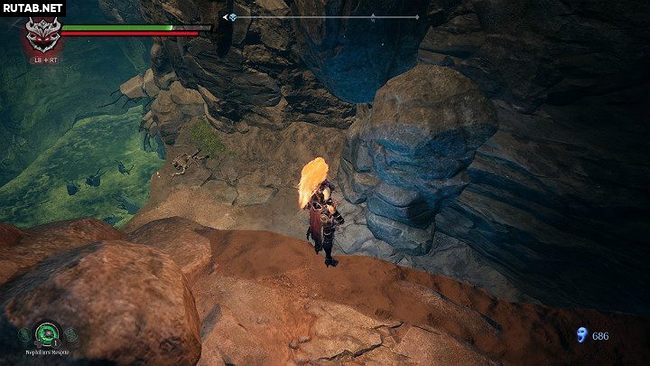Следите за соперником, подвешенным под потолком пещеры. Она упадет на вас, как только вы приблизитесь к предмету, видимому на расстоянии справа.