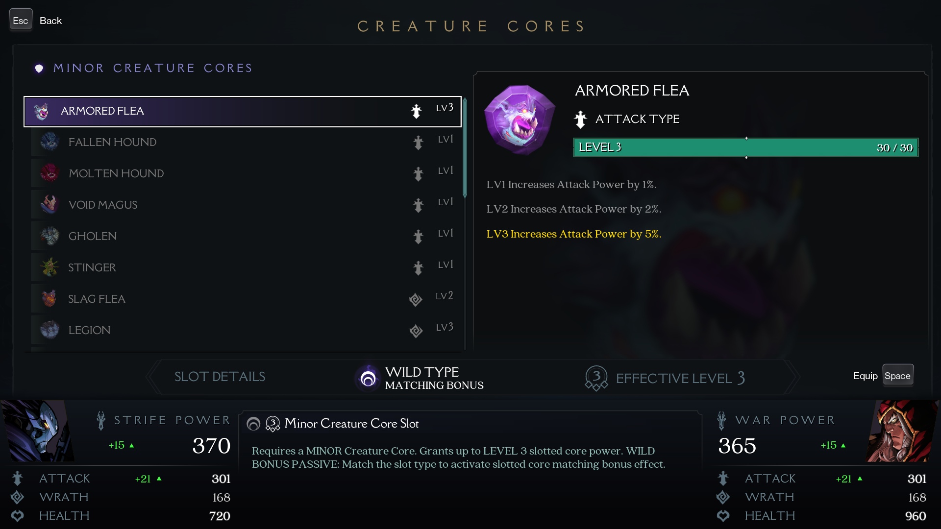 По мере того, как вы получите более мощные ядра, рассмотрите возможность их перемещения или удаления (При удалении ядра не исчезают из вашего инвентаря, не беспокойтесь), в зависимости от типа сборки.. Старайтесь сопоставить ядро со значком ячейки (Гнезда древа) и попробуйте переместить ядра более высокого уровня в предназначенные для них ячейки.