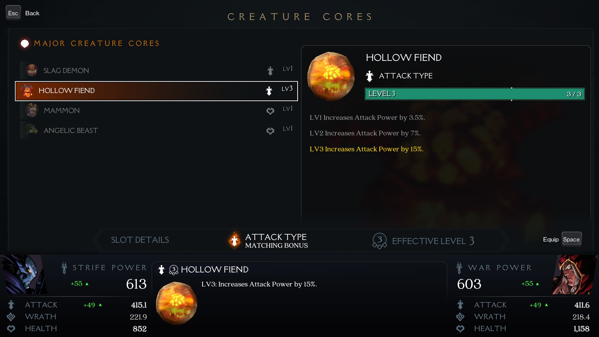 Вы никогда не сможете создать окончательное древо со всеми максимальными уровнями и каждым ядром, которое вы нашли. Не хватит места. Но если вы сопоставляете статистику и перемещаете свои лучшие Ядра Сущности в слоты самого высокого уровня, вы можете создать свою собственную стратегию в игре. И менять ее в зависимости от ситуации, изменяя комбинацию ядер.