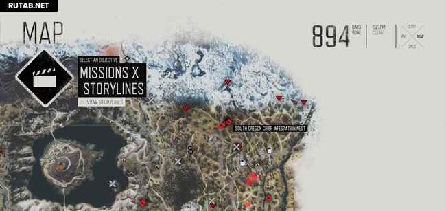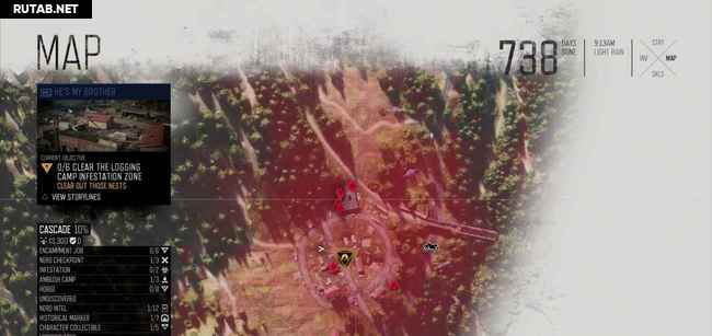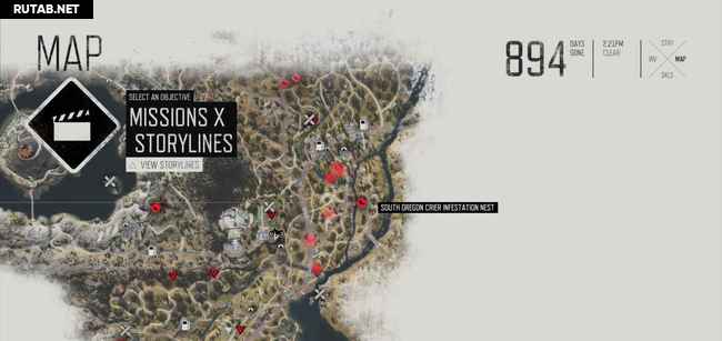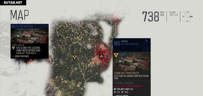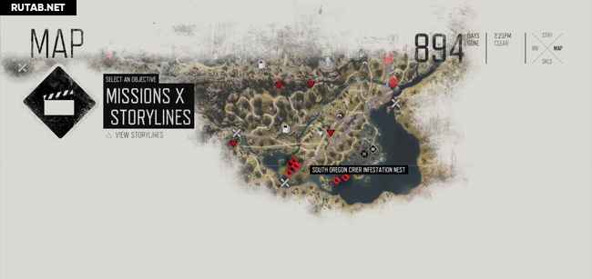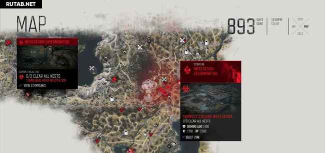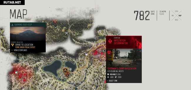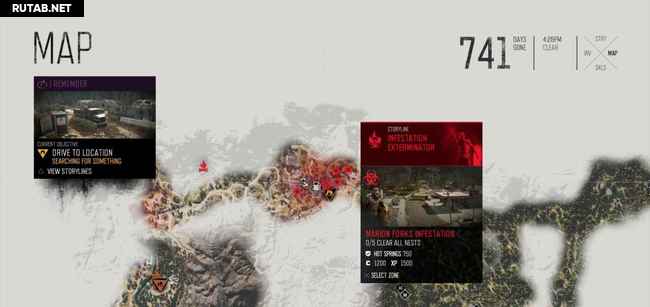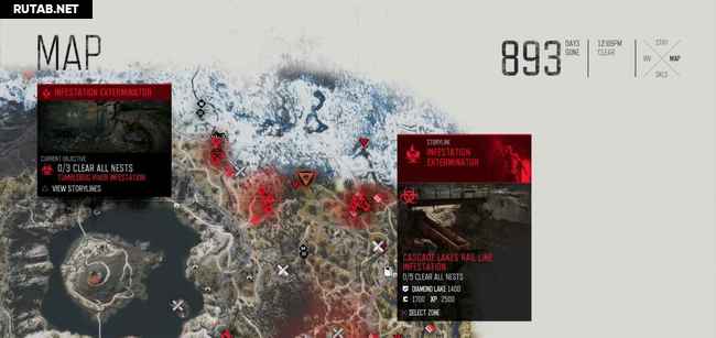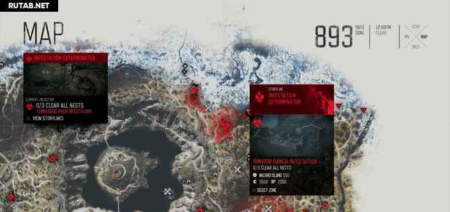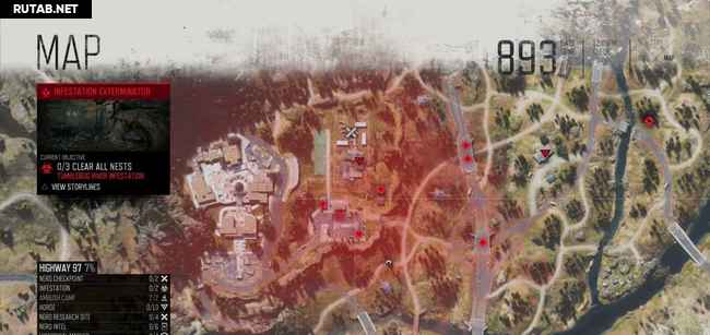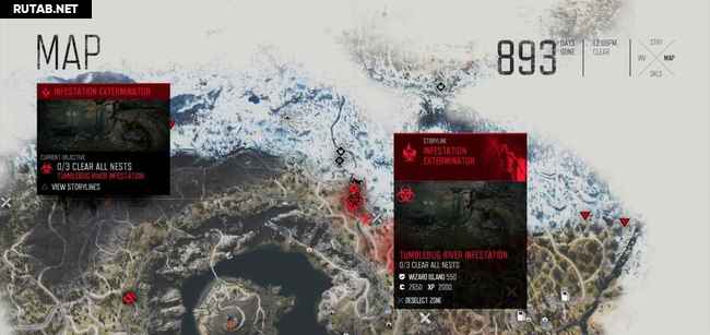 Руководство ниже содержит два скриншота на зараженное место. На первом масштаб уменьшен, чтобы показать вам общее местоположение. Второй увеличен, показывая вам, где именно гнезда (красные точки). Когда вы приблизитесь к гнезду, ваш персонаж почувствует его запах, и он автоматически будет отмечен на карте. Вы можете также заметить их издалека, потому что вокруг них есть черная зараженная масса. Как только вы сожжете гнездо, фрикеры выбегут, но убивать их не обязательно, достаточно просто сжечь гнезда.