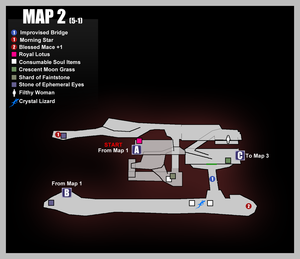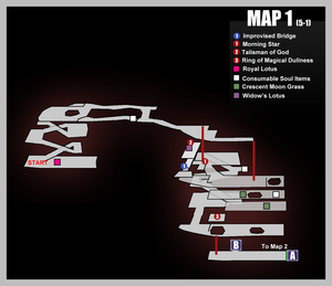 Теперь пройдите по импровизированному мосту на другую сторону. Есть еще один Растлённый, держащий в руках пылающий шест. Заботиться о нем. На трупе вы найдете x1 Талисман Бога и x2 Вдовий лотос.