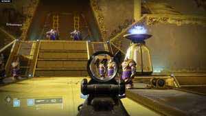 Затем победите 25 сильных врагов. Это враги с желтой полосой - такие как боссы - и вы найдете их в заданиях по всей игре. Чтобы ускорить процесс, посетите рейд "Левиафан". Как только боссы закончатся, возвращайтесь на орбиту и снова в рейд.