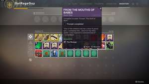 После того, как вы заработаете ран Героизм, вы получите триумф «Героические подвиги», а затем сможете сдать этап поручения «Устами младенца». Поздравляем, Страж! Паук-отшельник теперь ваш.
