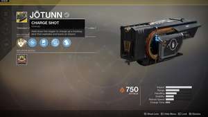 Йотун - это монстр в любой деятельности. В PVP он наносит очень большой урон одиночным целям, а его взрывная волна раскидает группу мобов. В PVЕ Йотун может испарить вражеского Стража за один выстрел. Он также отслеживает цели и имеет похоже бесконечный диапазон действия.