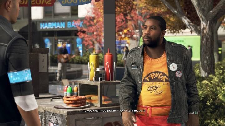 Во второй сцене Detroit: Become Human, Оттенки цвета, появился новый персонаж - Маркус, один из главных героев и «человек бурной натуры» (этот термин относится к андроидам). Ваша первая задача - собрать краску в магазине, отмеченным маркером миссии - видимым после нажатия R2.