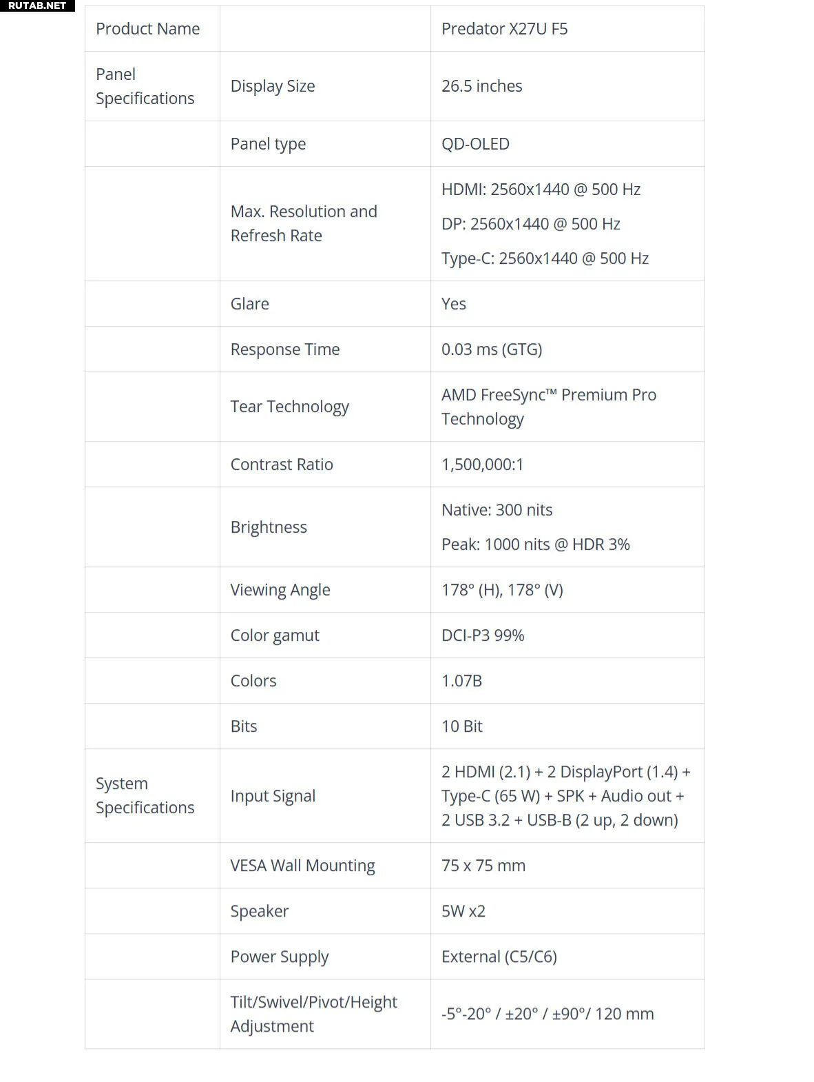 - Predator X27U F5 — от 83 000 рублей (€899), выход в третьем квартале 2025 года