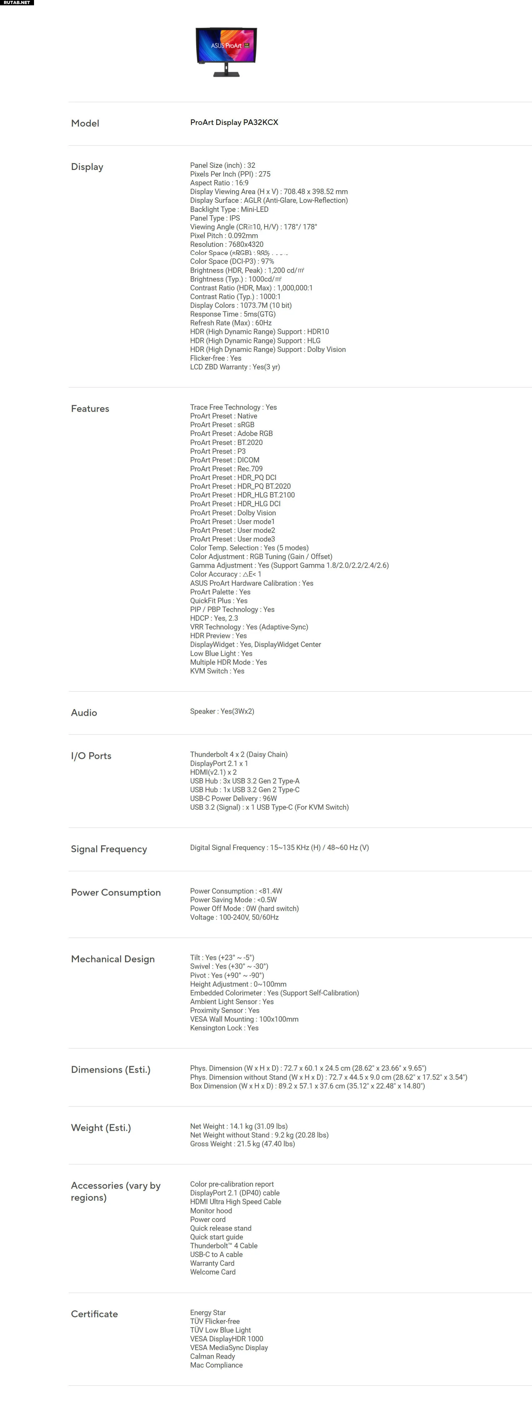 Компания ASUS объявила о начале продаж профессионального монитора ProArt Display 8K PA32KCX в октябре 2025 года. Это первый в мире 8K HDR монитор с мини-LED подсветкой, предназначенный для создателей контента.