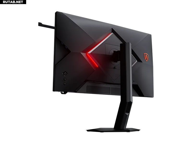 Дизайн AG277UX отличается сверхтонкой рамкой толщиной 1 мм и полигональным основанием. Система фоновой подсветки Light FX поддерживает более 100 000 цветовых комбинаций и 14 предустановленных эффектов. Эргономичная подставка позволяет регулировать высоту, наклон, поворот и ориентацию. Справа расположен выдвижной крючок для наушников.