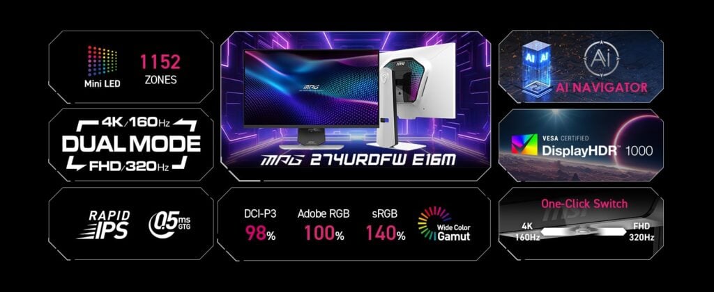 MSI представила в США игровой монитор MPG 274URDFW E16M с Mini LED и 160 Гц