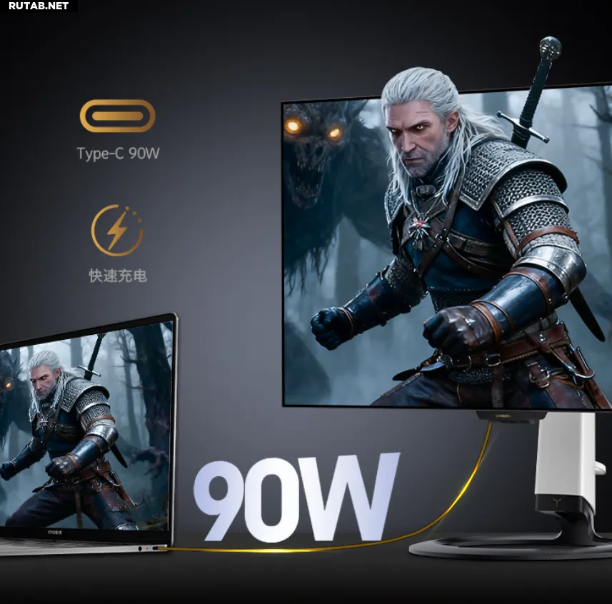 Экран имеет матовое антибликовое покрытие и оснащен функциями защиты зрения: DC-димминг, режим низкого синего света, автоматическая регулировка яркости по окружающему освещению и плавные переходы яркости. Корпус монитора толщиной 8,0 мм, а подставка позволяет регулировать высоту, наклон, поворот и портретный режим. Также имеется крепление VESA 75×75 мм.