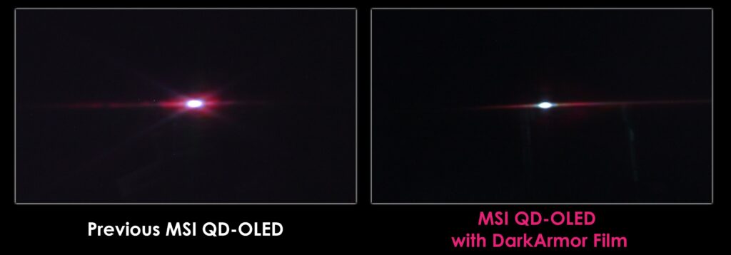 Оба монитора оснащены технологией DarkArmor Film, которая решает распространённые проблемы QD-OLED. Это покрытие устраняет фиолетовые и красноватые оттенки, появляющиеся на стандартных QD-OLED панелях при окружающем освещении. Плёнка увеличивает уровень чистого чёрного на 40%, улучшая контрастность и общее качество изображения. Она также повышает твёрдость поверхности экрана с 2H до 3H, обеспечивая в 2,5 раза большую устойчивость к царапинам при повседневном использовании.