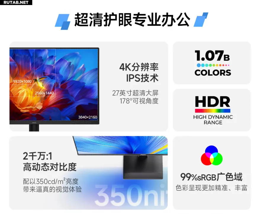 Компания AOC представила новый 27-дюймовый монитор U27E4, который уже появился в продаже на китайском маркетплейсе JD.com по цене 1399 юаней (~16800 руб.). Монитор ориентирован на профессионалов, которым важны разрешение 4K, точная цветопередача и комфорт для глаз при длительной работе.