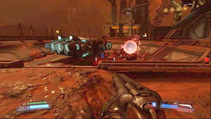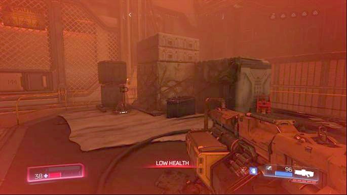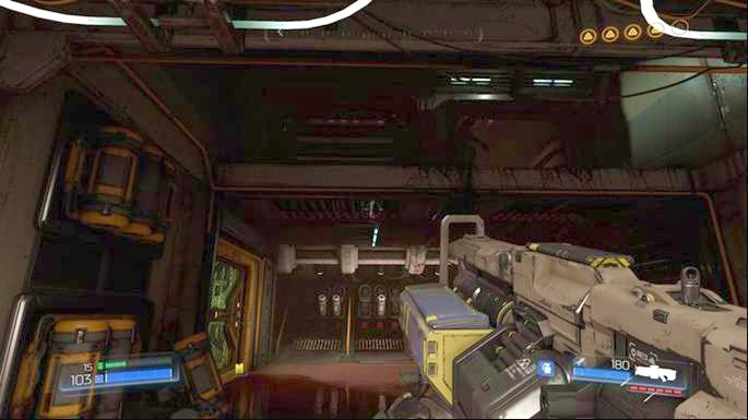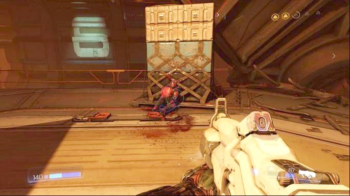 Вскоре после того, как вы получите задание вернуть желтый ключ, появится большая группа демонов. Используйте гравитационную пусковую установку, когда последний враг мертв, и прыгайте на платформу выше. Там будет еще один элитный страж, лежащий там.