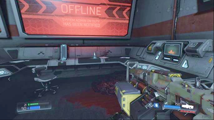 Чуть дальше от элитного стражника будет комната с журналом данных, лежащим в углу, и компьютер, которым вы сможете пользоваться.