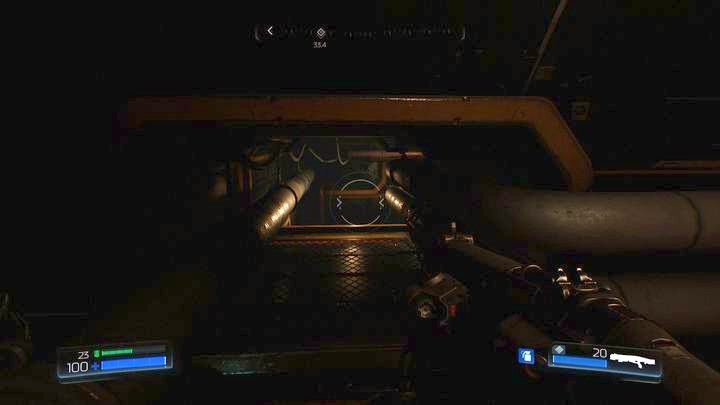Справа от коридора вы должны заметить закрытый люк. Откройте его, спуститесь и убейте врагов, которые там есть.