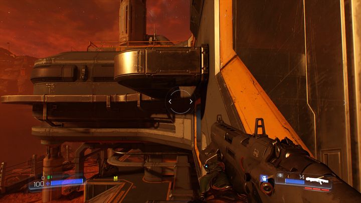 Вернитесь туда после убийства всех врагов и затем перейдите на противоположную сторону узкой следы. Ваша цель - платформа слева. Чтобы добраться до него, вы должны сначала забраться на ближайший поручень.