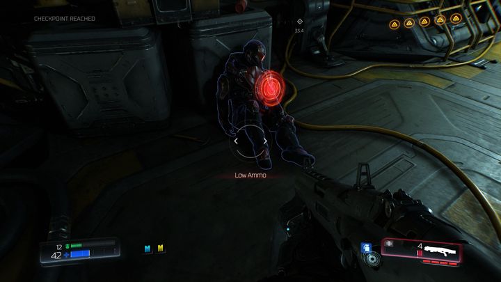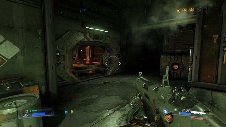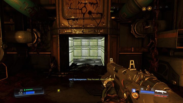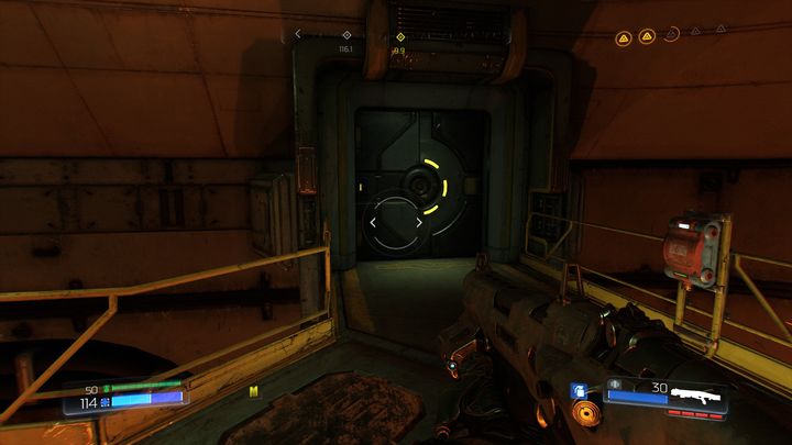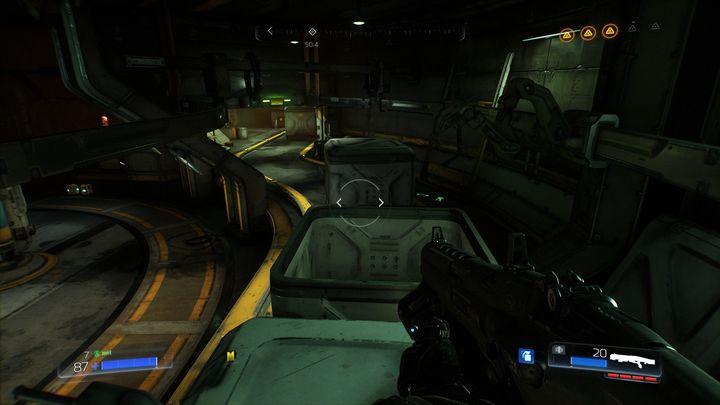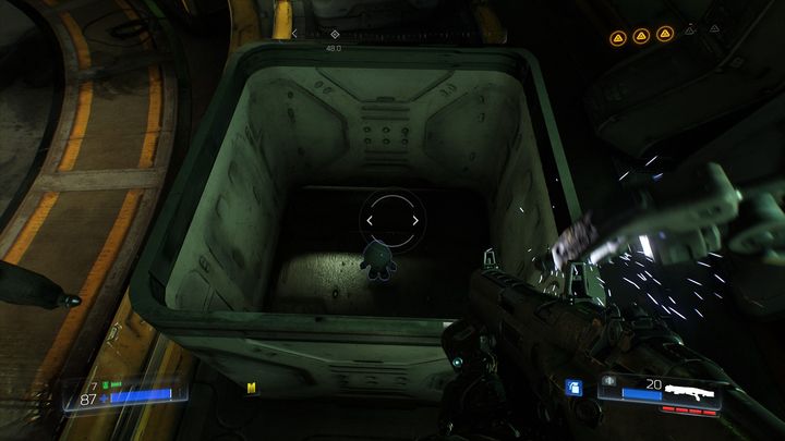 Пройдя через комнату за желтой дверью, вы доберетесь до места, заполненного демонами. Убейте их всех, а затем осмотрите ящик справа.