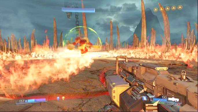 Самым опасным является атака тегов демонов. Монстр, атакующий на расстоянии, поднимет другого демона в воздух и, собрав достаточно энергии, ударит его и создаст смертельную ударную волну. Чтобы избежать этого, вы должны быстро начать стрелять в дальнего демона. Как только он получит достаточно урона, оба врага будут оглушены. Это хорошее время, чтобы нанести им огромный урон. Вы также можете оглушить противников с помощью BFG. Как только битва закончится, можете возьмите Горнило и закончить уровень.