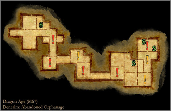Оранжевые (!) восклицательные знаки предупреждают о сложных местах из-за присутствия монстров или из-за наличия ловушек. Красные (!) восклицательные знаки предупреждают о еще более опасных зонах, где вас могут легко убить, если вы не готовы к битве. Обратите внимание, что эти предупреждения не обязательно относятся к вашему первому посещению, поскольку они могут говорить о будущих событиях. Например, область вокруг башни в Остагаре станет опасной, только когда вы станете Серым Стражем.