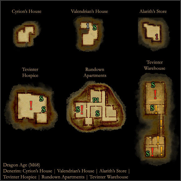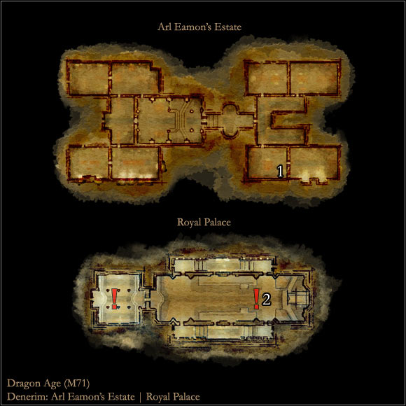 - После того, как вы успешно выполнили квест Спасти королеву, посетите комнату Эрла Эамона в его поместье, и вы встретите Риордана (M71, 1). Он серый Страж, у вас был шанс спасти во время изучения [Денерим - Поместье эрла Денерима] а взамен освободив его, он упомянет сокровище. Теперь вы можете отправиться на [Денерим - Торговый квартал - Торговый склад] (M65, 3). Нажатие на шкаф откроет секретную комнату, заполненную множеством ценных предметов.