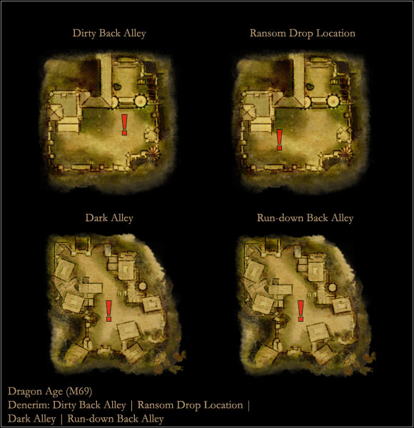 - Если вы решили стать городским эльфом в начале игры и если вы согласились взять взятку Вогана вместо того, чтобы убить его, у вас будет шанс получить золото, которое он дал вам, как только вы начнете квест Спасти королеву. , Подождите, пока ваша команда не окажется в [Денерим - Поместье эрла Денерима - фасад] и направляйтесь на северо-запад. Осмотрите обломки, найденные возле одной из стен усадьбы (M72, 1).