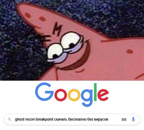 В сети вы, конечно же, встретите сайты, которые предлагают вам скачать торрент Ghost Recon Breakpoint. Не советуем скачивать такие файлы, потому что в лучшем случае вы просто скачаете файлы игры. Но они не будут взломаны, и вы сможете только посмотреть на них. А в худшем все может закончиться примерно так.