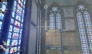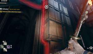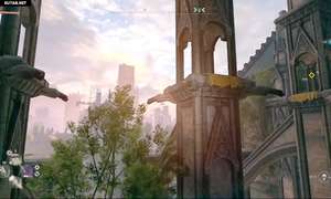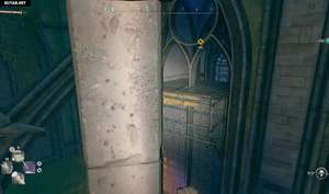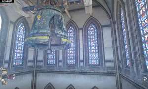 Пройдите по этому выступу, и вы увидите другой доступный выступ, прыгайте на него, а затем используйте перекладину, чтобы приземлиться на другой выступ. Пройдите по нему; вы найдете окно справа от вас. Войдите внутрь, спуститесь по лестнице, которая находится на выступе, на котором вы находитесь, а затем посмотрите вверх и прыгайте на колокол Собора.